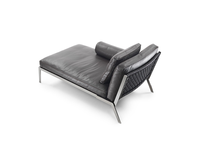 Шезлонг HAPPY от итальянской фабрики FLEXFORM – воплощение элегантности и ручного мастерства. Металлический каркас с изысканным кожаным переплетением контрастирует с мягкими подушками, наполненными стерилизованным гусиным пухом (сертификат Assopiuma Gold Label). Доступен в различных цветовых решениях кожи и замши, включая классические белый, черный, оливковый и эксклюзивные оттенки.