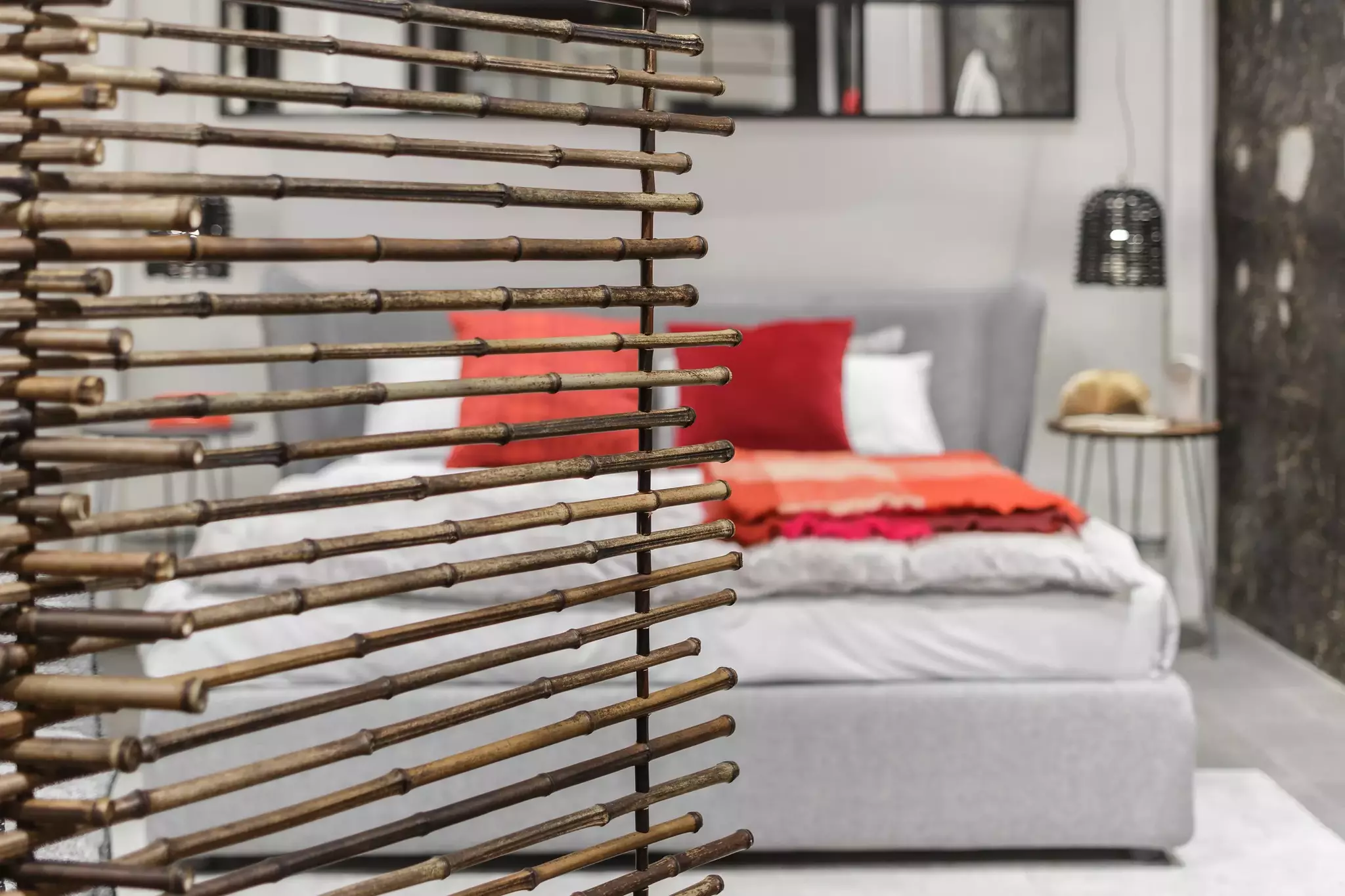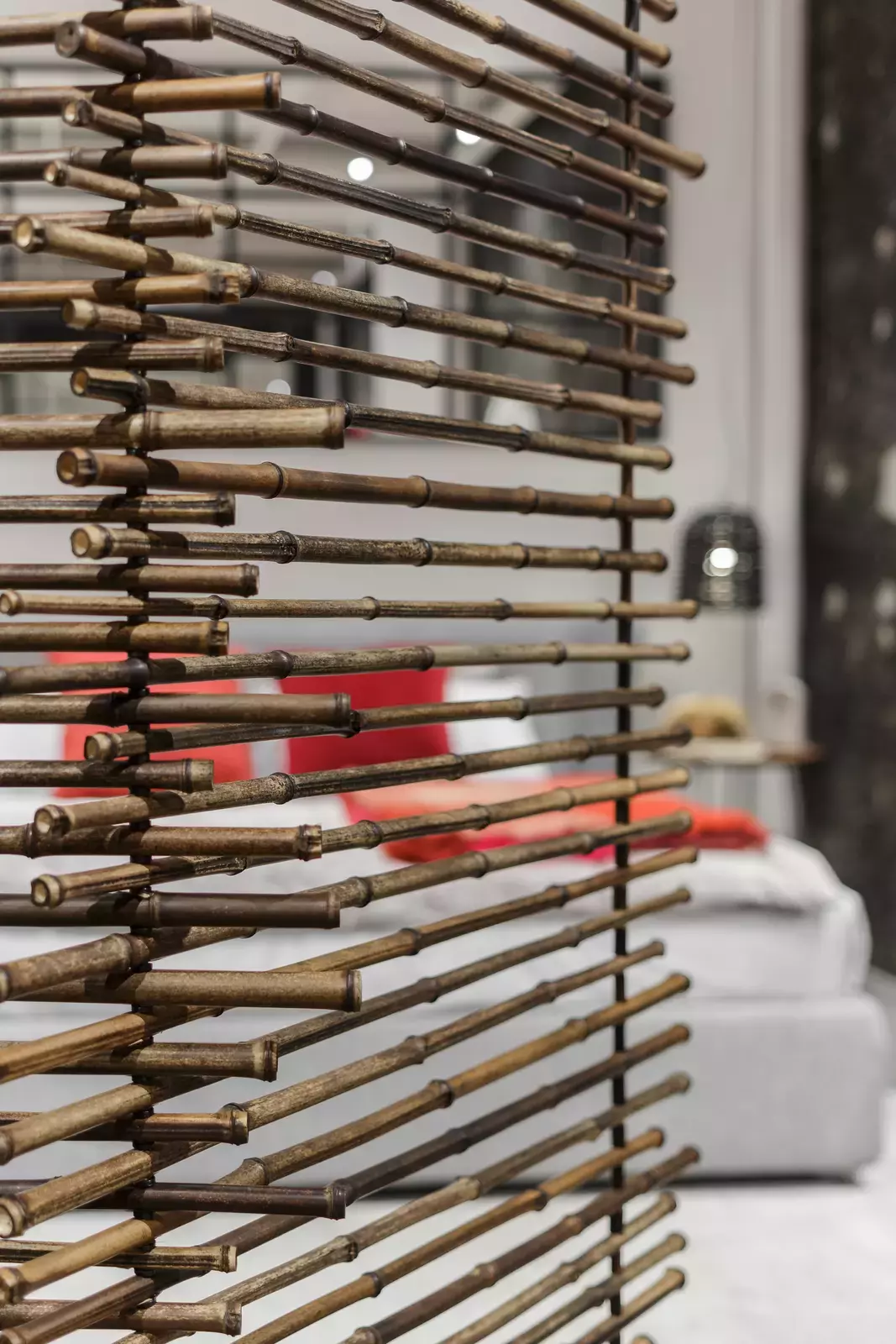 Итальянская ширма Fold Partition 90 Collection Black от фабрики Gervasoni — элегантный аксессуар для зонирования пространства. Трехдверная конструкция из натурального черного бамбука с прутьями разной длины создает эффект динамики и контраста. Игра света и тени, продуманная итальянскими дизайнерами, придает интерьеру глубину и изысканность.