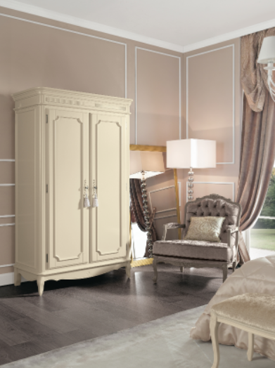 Шкаф FRANCESCA WARDROBE 2 DOORS выполнен в лучших традициях итальянского мебельного дизайна. Его фасады украшены деликатными резными элементами, а пропорции тщательно выверены для создания эффектного визуального баланса. Двустворчатая конструкция с распашными дверцами обеспечивает удобный доступ к внутреннему пространству, а зеркальные или стеклянные вставки (в зависимости от выбранной модификации) добавляют интерьеру легкости и света.
