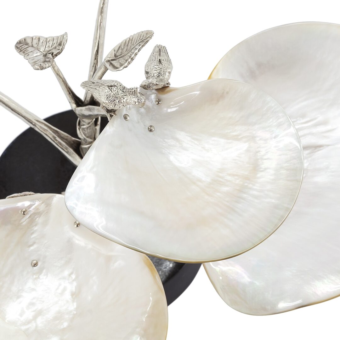 Каждая деталь шведского стола GABI LEAVES X5 продумана до мелочей. Выполненный из посеребренного металла с изысканными элементами из натурального перламутра, он не только поражает своей красотой, но и подчеркивает статусность вашего мероприятия. Элегантный вид и роскошные материалы делают его идеальным акцентом для любого торжества, от свадеб до корпоративных мероприятий.