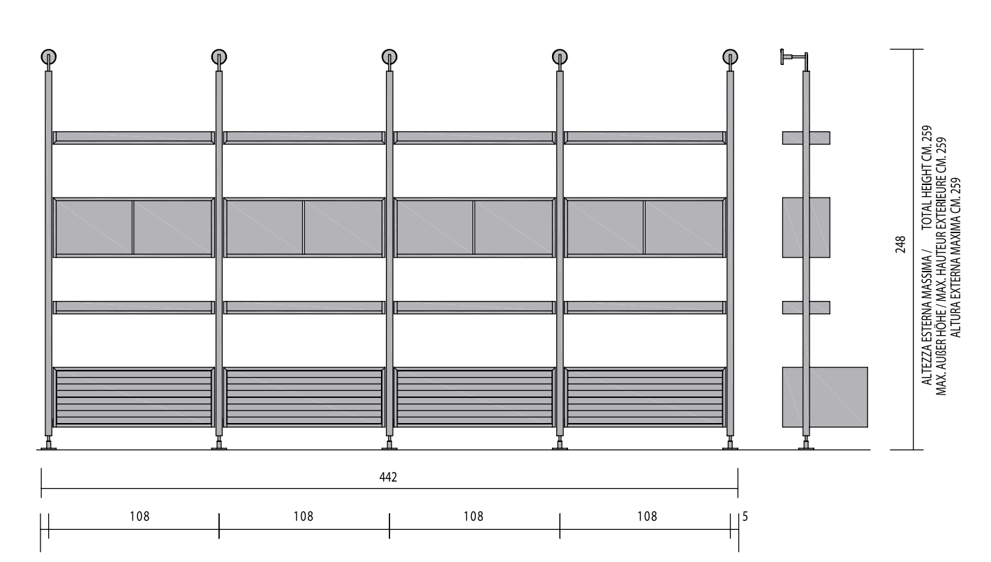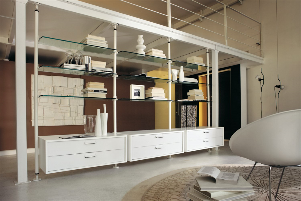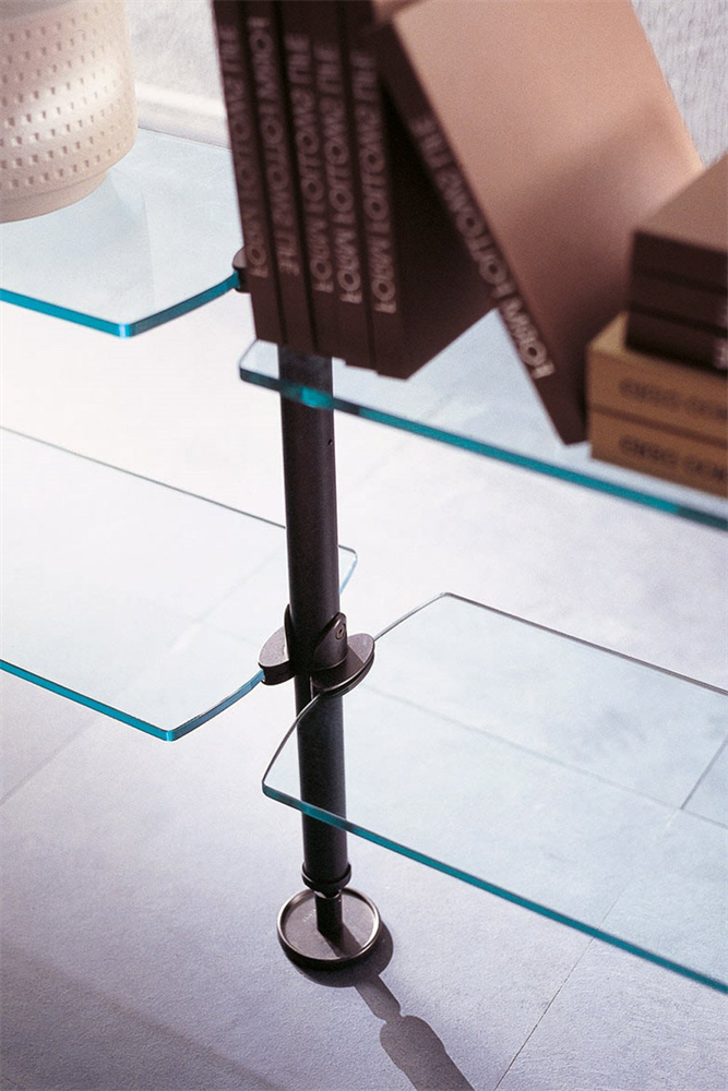 Этот модульный книжный шкаф впечатляет элегантным дизайном и функциональностью. Оснащен опорными колоннами из бронзового металла, он может крепиться как к потолку, так и к стене, что обеспечивает максимальную гибкость в интерьере.