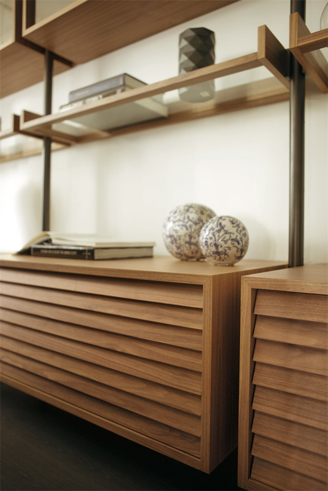 Каждый элемент стеллажа Ubiqua несет в себе тепло натуральных материалов, создавая атмосферу уюта и респектабельности.