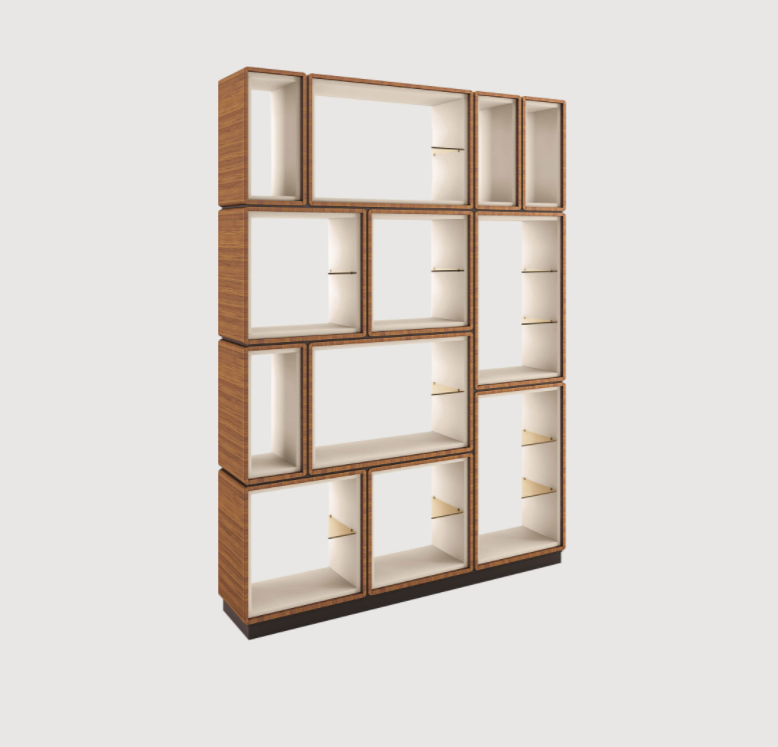 Стеллаж DEDALO удивляет своей гармоничной формой и утонченным стилем. Он выполнен из массива дерева и фанеры, а его внешняя структура может быть предложена в лаковой отделке или шпоне грецкого ореха каналетто, что придаёт ему особую элегантность. Хрустальные полки бронзового цвета добавляют нотку изысканности и делают этот стеллаж идеальным элементом для любой комнаты – от гостиной до библиотеки.