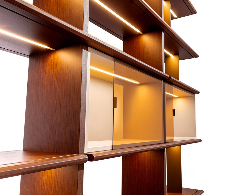 Стеллаж DUO M радует глаз своим современным дизайном, который великолепно вписывается как в роскошные, так и в минималистичные интерьеры. Чистые линии и строгие формы подчеркивают его элегантность, а возможность выбора отделки позволяет адаптировать его под любые предпочтения. Это не просто предмет мебели — это настоящее произведение искусства, которое добавит нотку утонченности и респектабельности в вашу гостиную или офис.