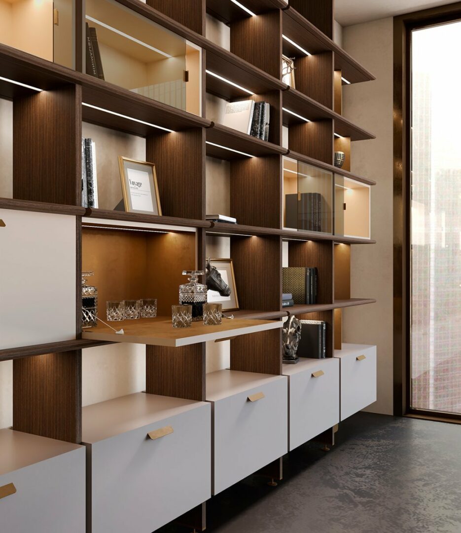 Стеллаж DUO XL — это настоящий шедевр, который сочетает в себе современный стиль и элементы классики. Его продуманный дизайн позволяет легко вписать его в любой интерьер — от минималистичного до роскошного. Каждая деталь, от полок до каркаса, выполнена с любовью и вниманием к деталям, что подчеркивает исключительное мастерство итальянских дизайнеров.
