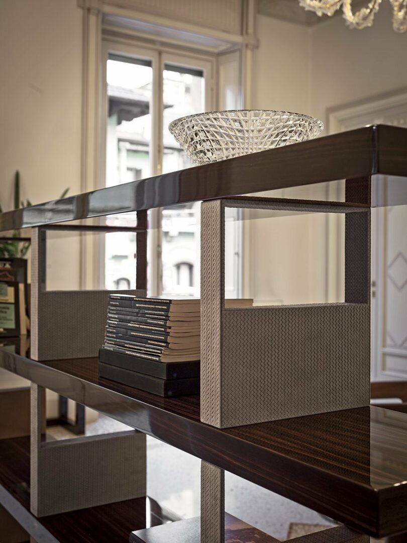 Стеллаж HARVARD EVO от итальянской фабрики LONGHI — это идеальное решение для тех, кто ценит элегантность и функциональность. Сборный стеллаж предлагает разнообразие полок с двумя вариантами длины, выполненных из высококачественных материалов. Обтянутые кожей металлические опоры и перегородки обеспечивают прочность и стильный внешний вид.