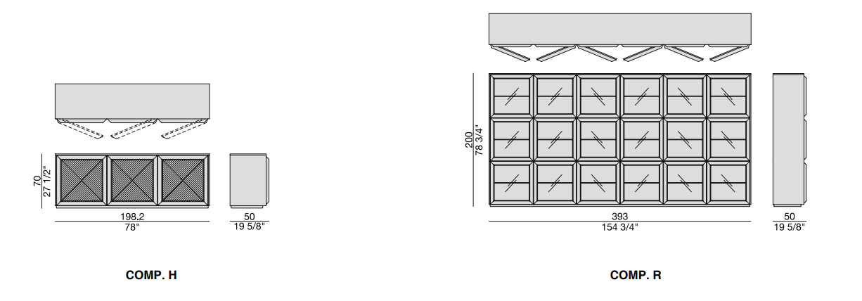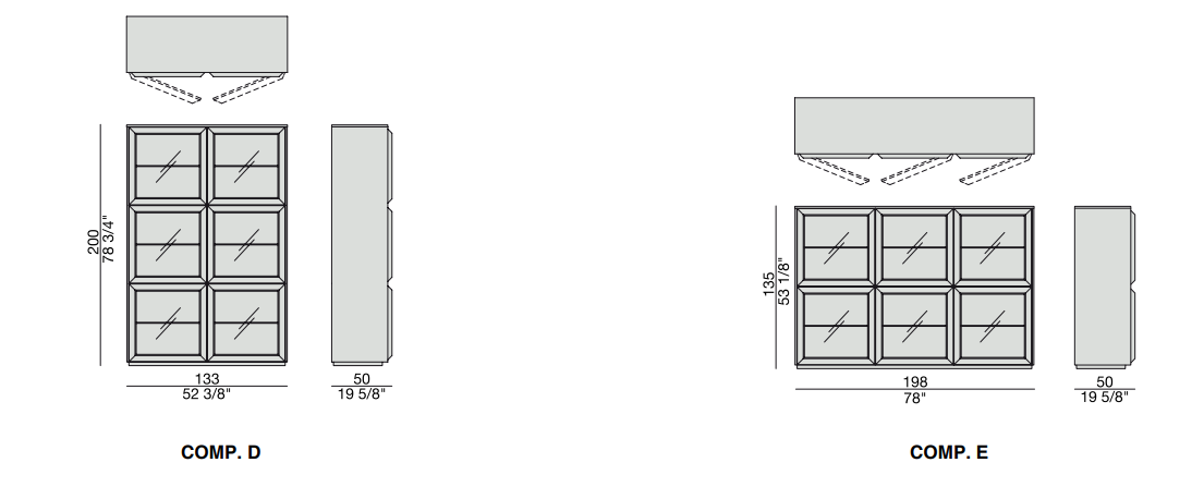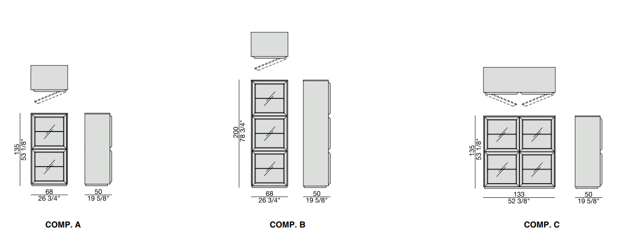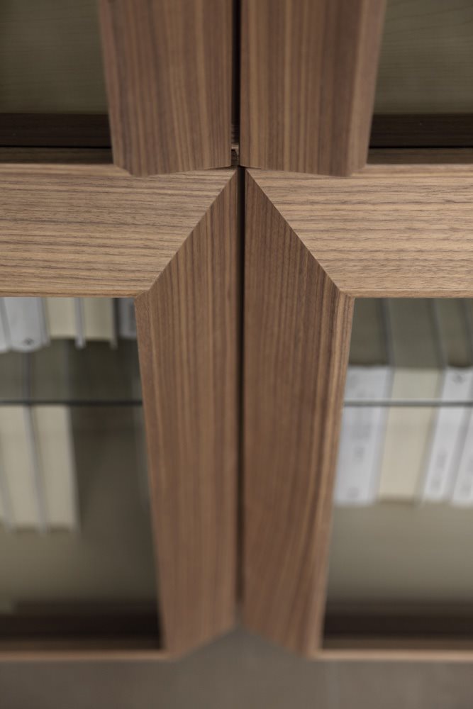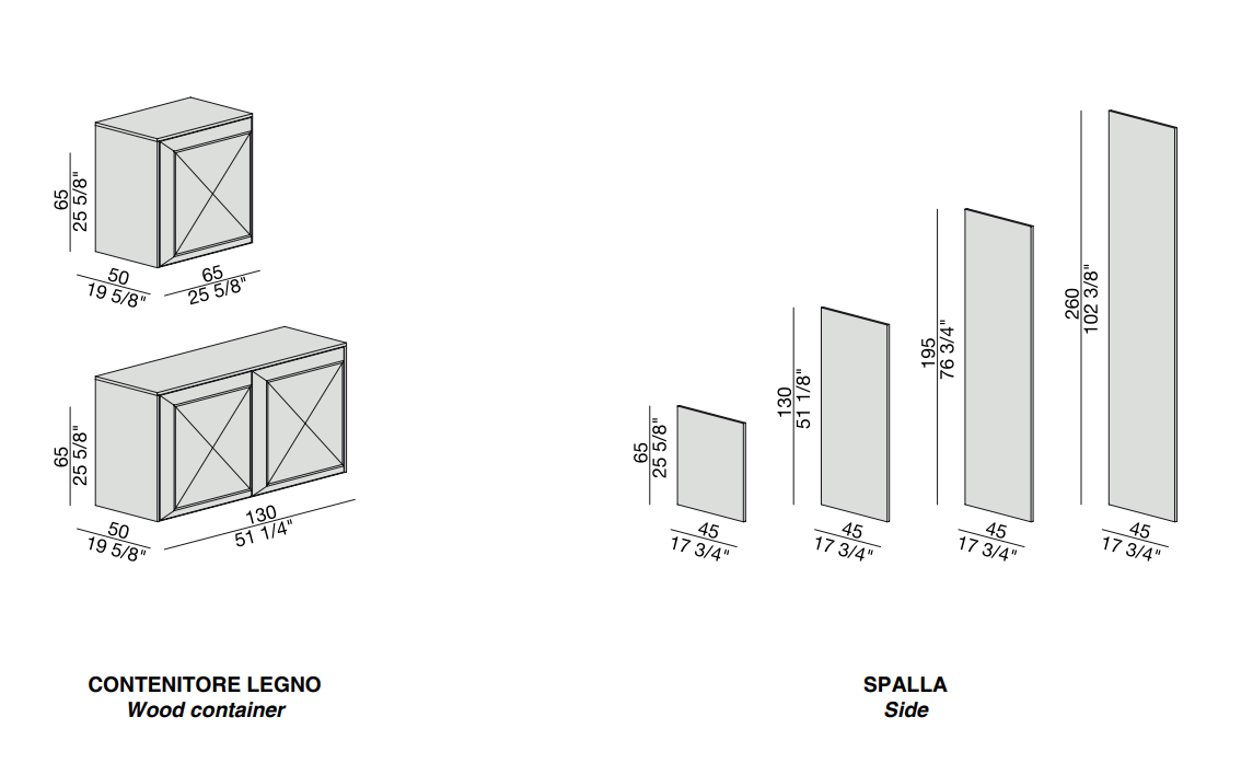 Элегантная модульная система, выполненная из ореха каналетта, предлагает как односторонние, так и двусторонние элементы, оснащенные стеклянными или деревянными дверями. Угловые элементы с стеклянной дверью добавляют функциональности и стиля вашему пространству. Интерьер контейнера выполнен из канадского клена, что подчеркивает высокое качество и изысканность.
