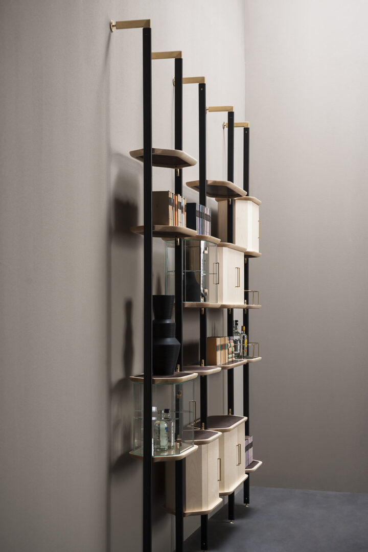 Стеллаж LIBELLE сочетает авангардные линии с классической элегантностью, характерной для итальянской школы дизайна. Его открытые полки и продуманные пропорции создают ощущение легкости, а благородные материалы добавляют визуальную глубину. Модель идеально впишется в: