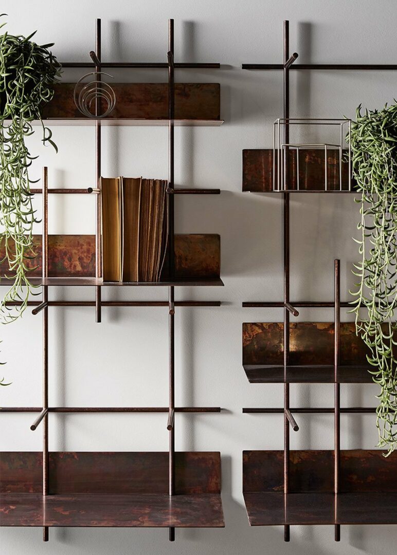 Настенный книжный шкаф Navigli от итальянской фабрики Gallotti&Radice – воплощение роскоши и ручного мастерства. Полки и каркас выполнены из полированной вручную меди с естественными неровностями, что придает каждому изделию уникальный характер. Доступен в двух версиях (A и B) с габаритами 70×24×120 см. Итальянское качество и эксклюзивный дизайн делают этот стеллаж настоящим украшением интерьера.