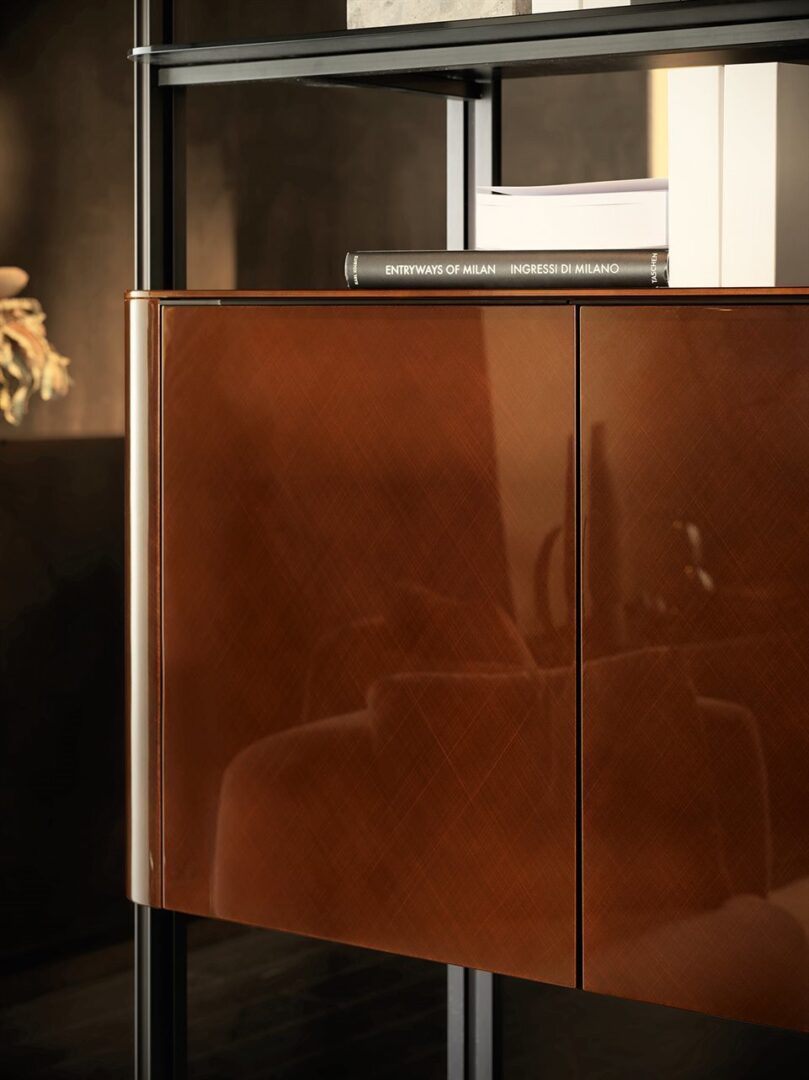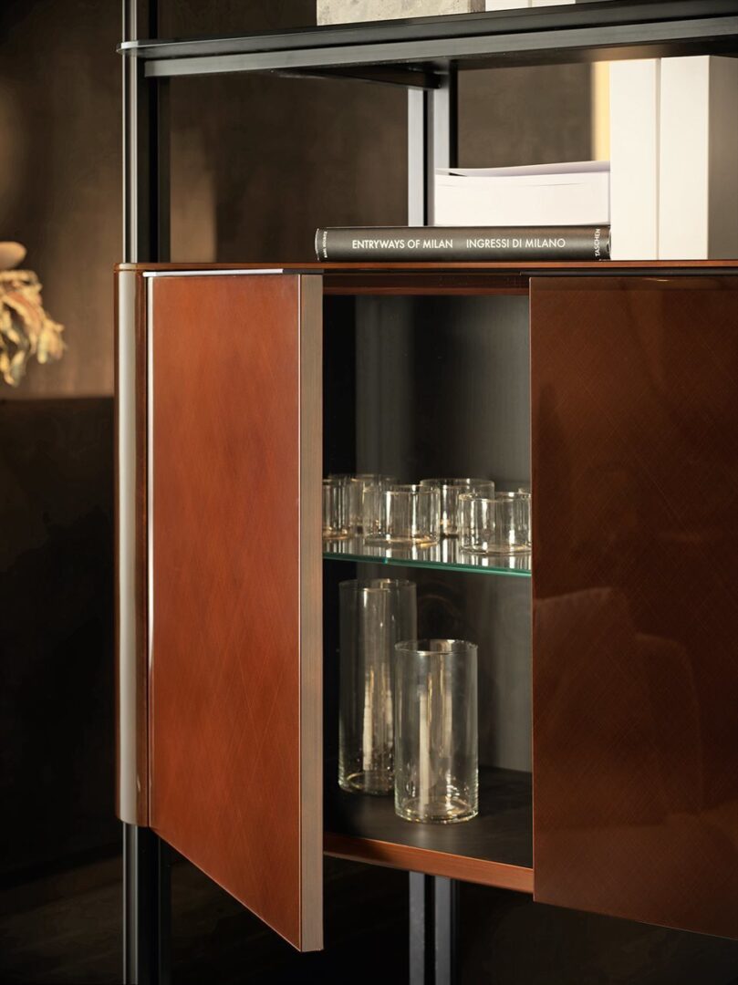 Стеллаж Syil воплощает современный минимализм, дополненный изысканной итальянской эстетикой. Его конструкция — это игра геометрии и легкости: тонкие металлические опоры сочетаются с прозрачными или матовыми стеклянными полками, создавая эффект парящего объема. Дизайнеры Gallotti&Radice уделили внимание каждой детали, чтобы мебель выглядела утонченно и в то же время монументально.
