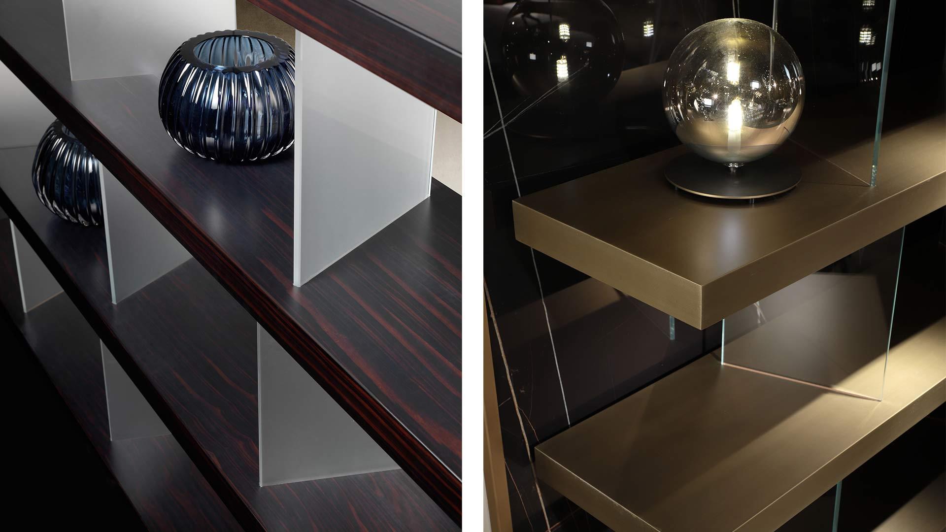 Фабрика REFLEXANGELO использует только натуральные материалы высочайшего качества. Корпус стеллажа TANGO выполнен из массива ценных пород дерева, а декоративные элементы могут быть дополнены: