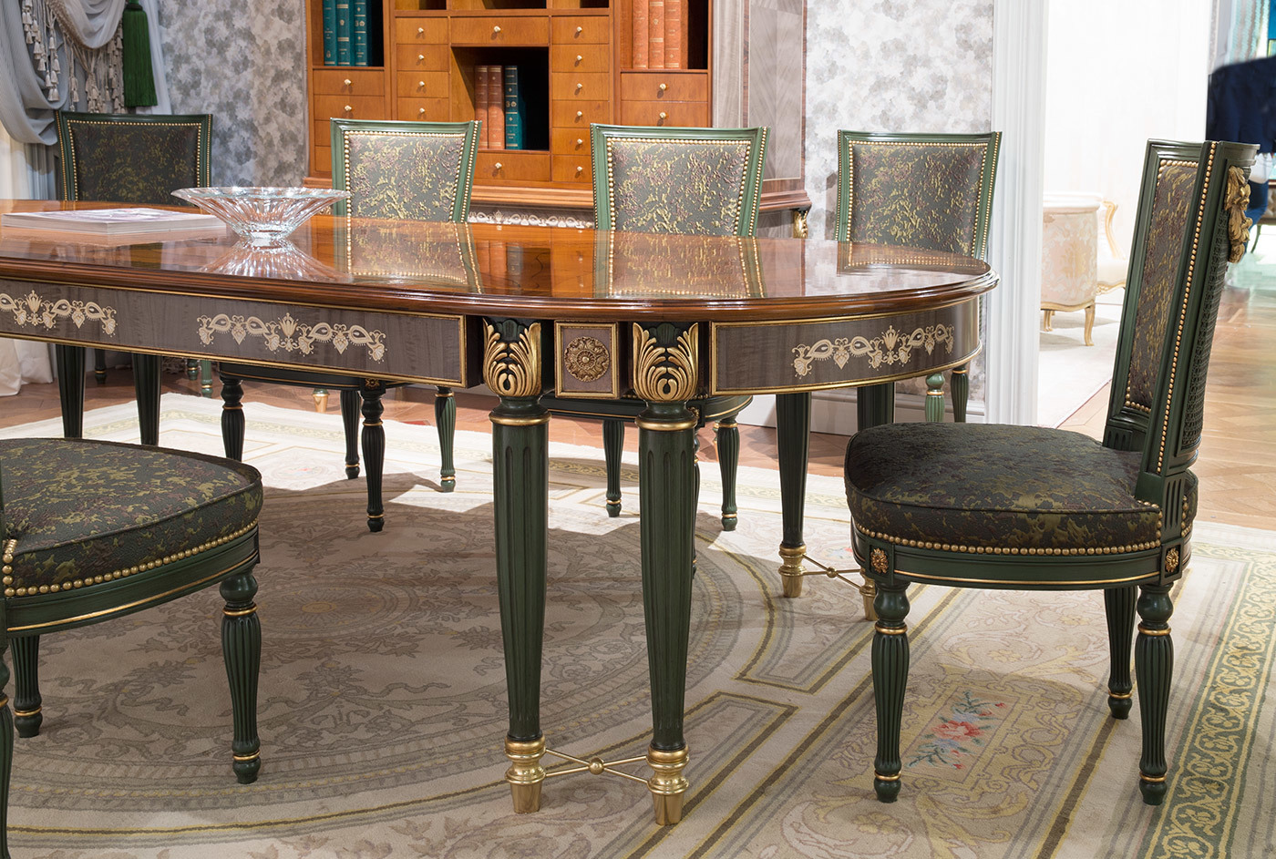 Стол выполнен из высококачественных материалов с тщательной проработкой деталей. Итальянский дизайн сочетает функциональность и утончённую эстетику. Подходит для обеденных зон в классическом или современном стиле.