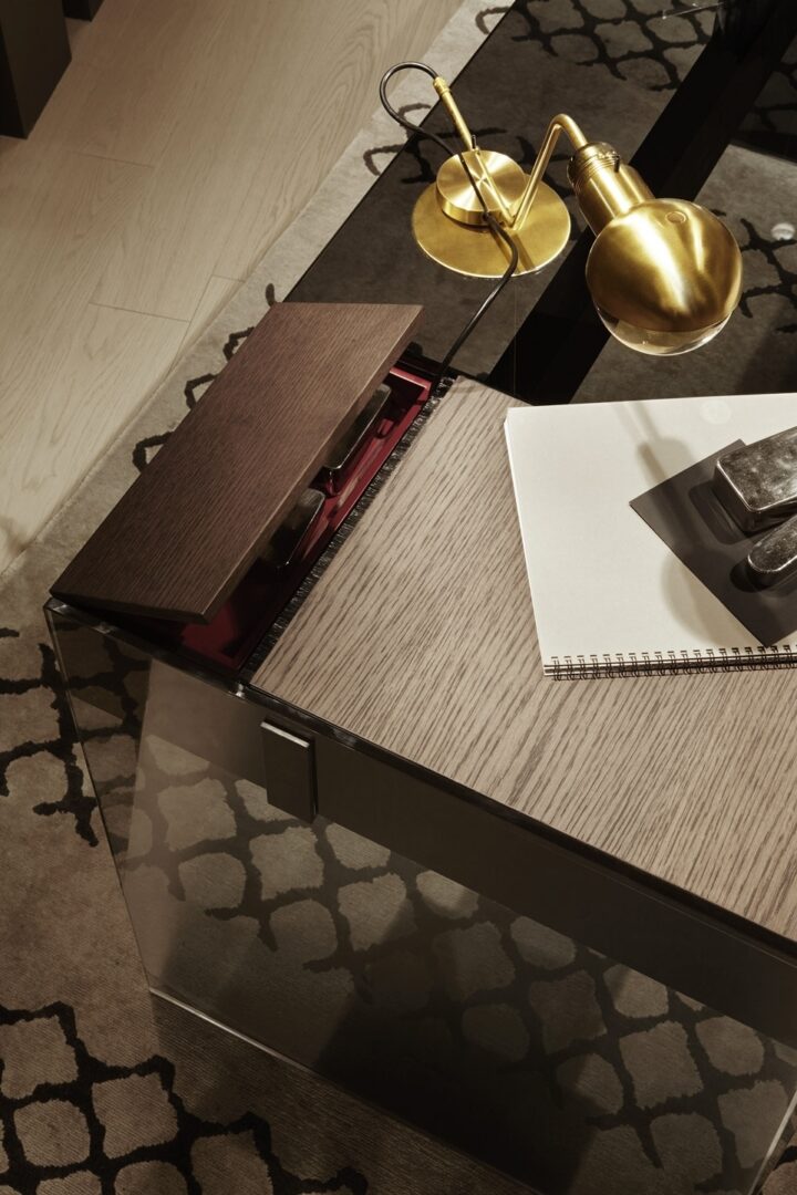 Итальянская мебель славится использованием натуральных материалов высочайшего качества, и Air Desk W — не исключение. Каркас стола выполнен из прочного металла с изысканной отделкой, а столешница — из ценных пород дерева или закаленного стекла, в зависимости от выбранной модели. Каждый элемент тщательно обработан вручную, что гарантирует безупречную гладкость поверхности и устойчивость к износу.