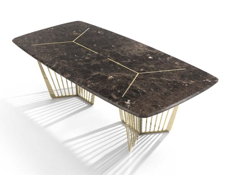 Стол ALFIERI от итальянской фабрики VITTORIA FRIGERIO — это настоящее произведение искусства, воплощающее лёгкость и элегантность. Мраморный верх с уникальным естественным рисунком в сочетании с тонкой металлической основой и изысканной инкрустацией создаёт исключительный стиль. Этот стол идеально впишется в любой интерьер, добавляя нотку роскоши.