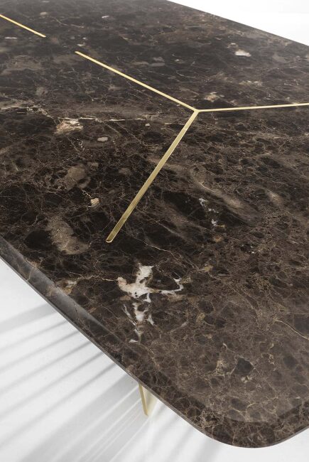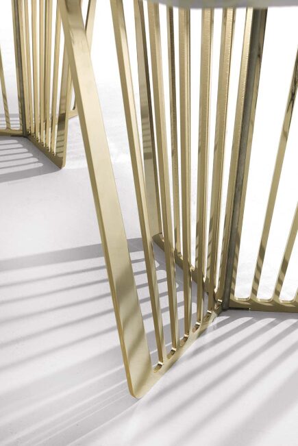 В производстве стола используются только благородные материалы. Мраморный верх не только привлекает взгляды благодаря своему естественному рисунку, но и обеспечивает долговечность, а металлическая основа гарантирует устойчивость и надежность. Каждый элемент тщательно проработан мастерами, что делает каждую деталь уникальной.