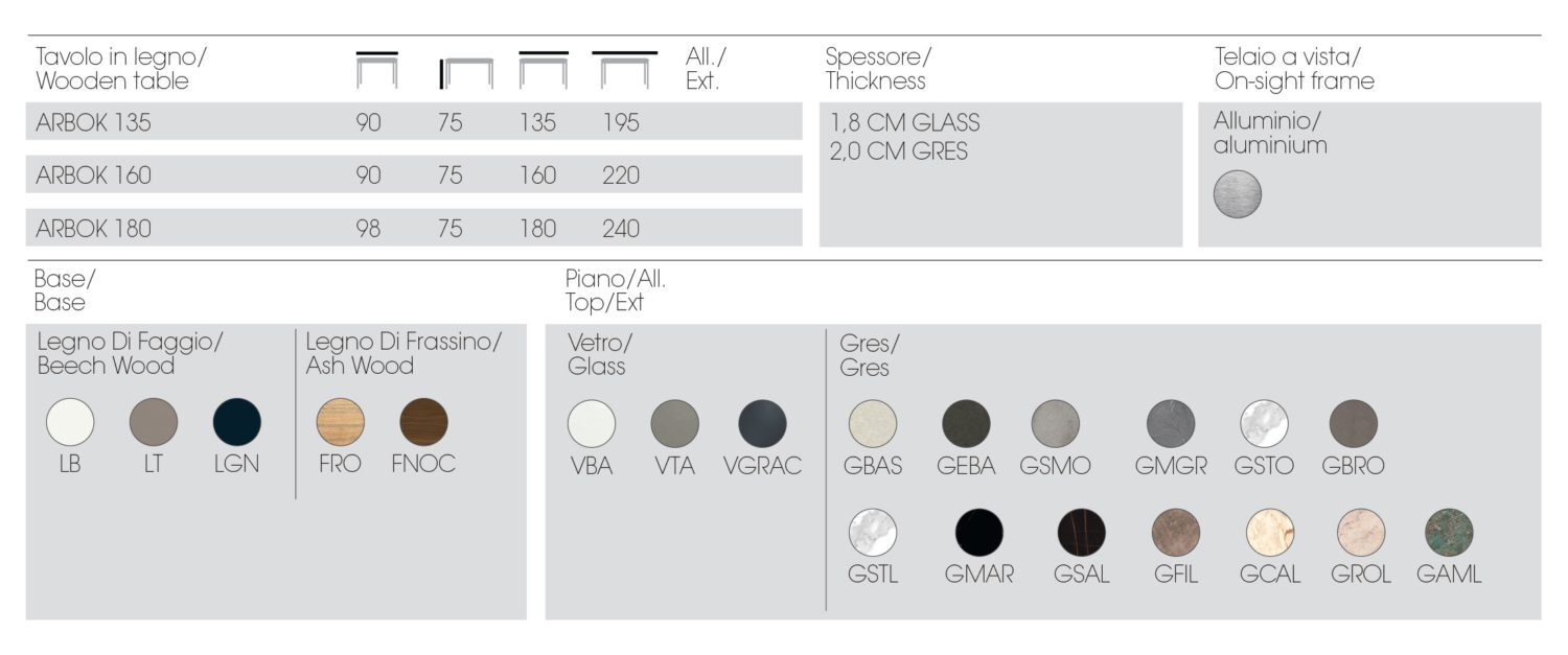 Обеденный стол Arbok от итальянской фабрики NOVAMOBILI сочетает в себе элегантность и функциональность. Его отличительная черта – оригинальная ножка с возможностью декоративной керамической вставки. Каркас из бука или ясеня дополнен алюминиевой рамой, обеспечивающей прочность и легкость. Столешница доступна в вариантах из травленого стекла или керамики, а выдвижной механизм с поворотным листом делает стол удобным в использовании.