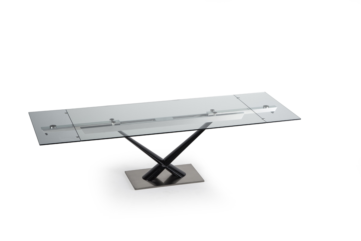 Стол ARCADIO от итальянской фабрики NAOS — это идеальное сочетание утонченного стиля и высокой функциональности. Удлиняемый обеденный стол с хрустальным верхом и окрашенными стальными ножками придаст вашему интерьеру роскошь и элегантность. Запатентованный механизм позволяет легко увеличить столешницу на 80 см, что делает его идеальным для больших семейных обедов.
