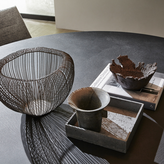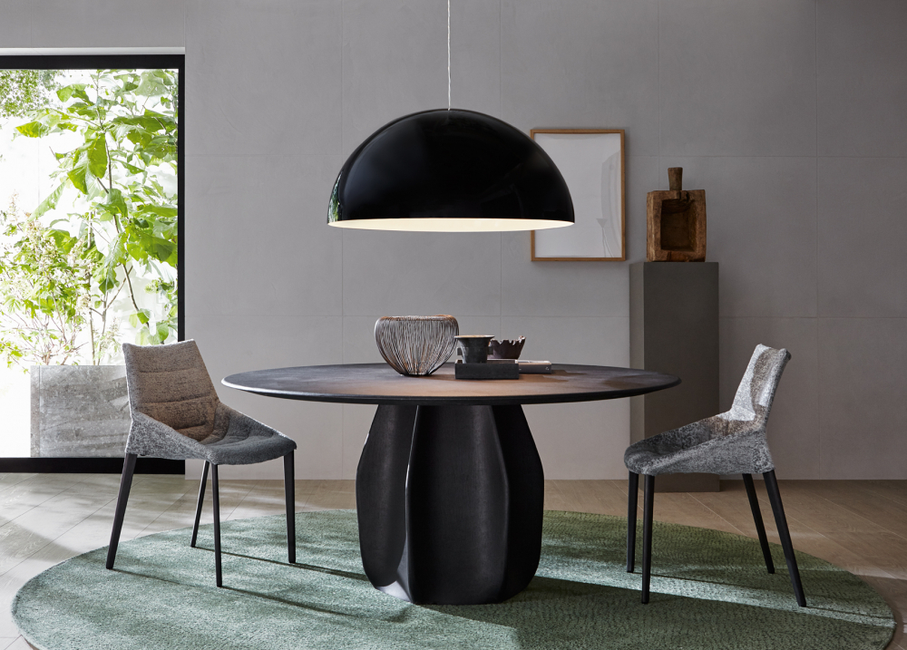 Стол ASTERIAS от итальянской фабрики MOLTENI & C – это элегантное сочетание инновационных технологий и традиционного мастерства. Круглая столешница диаметром 160 или 180 см с закругленным краем создает выразительный геометрический узор из четырех клиньев. Уникальное основание в виде кактуса, выполненное из шести изогнутых деревянных панелей с 3D-печатью, придает столу скульптурную выразительность.
