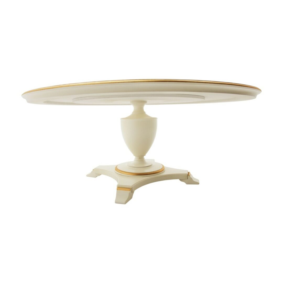 Стол BISCOTUS — это изысканный элемент интерьера, который привносит в ваш дом атмосферу классического стиля. Изготовленный из прочного букового дерева, он отличается элегантной круглой верхней частью и массивной ножкой с возможностью лакировки сусальным или серебряным листом.