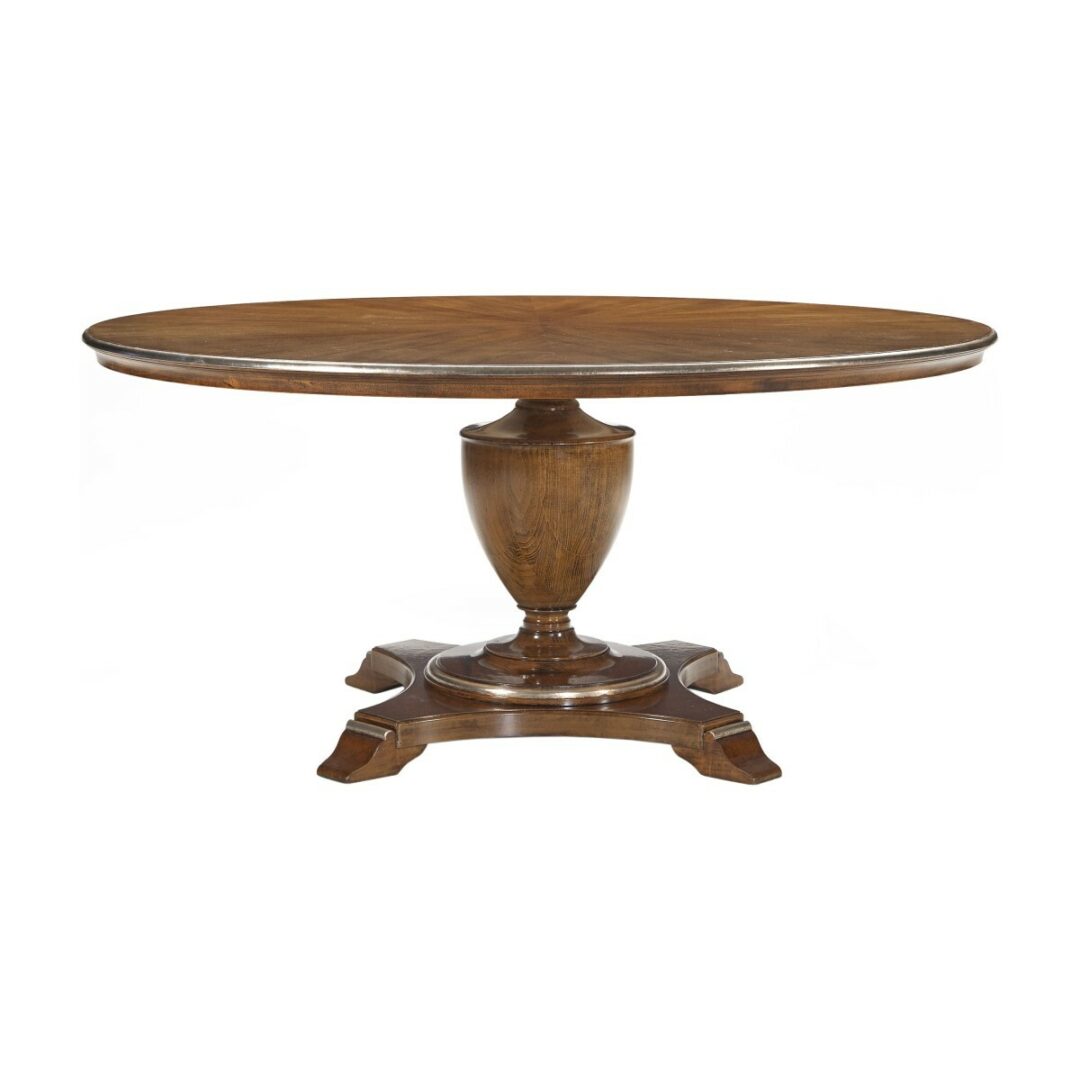 Стол имеет круглую верхнюю поверхность, создающую ощущение уюта и гармонии. Массивная ножка, украшенная тонкими деталями, может быть дополнительно обработана лаковым покрытием из сусального или серебряного листа, что придает изделию особую роскошь. С размерами 180 см в ширину и глубину и высотой 82 см, стол BISCOTUS идеально впишется в любое пространство, будь то просторная столовая или уютная кухня.