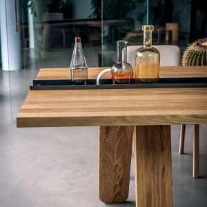 Стол CANAL сочетает монументальность натурального дерева с легкостью металлического основания, создавая баланс между теплотой и современной строгостью. Его дизайн — ода итальянскому minimalismo, где каждая линия продумана, а текстура материала становится частью художественной композиции.