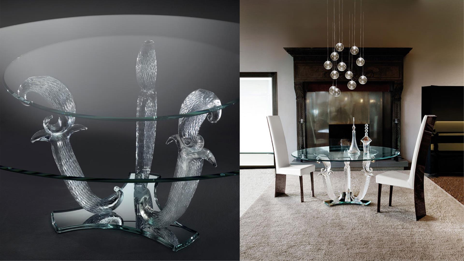 Обеденный стол CASANOVA 72 от итальянской фабрики REFLEXANGELO – воплощение роскоши и мастерства. Стол выполнен с прозрачными стеклянными ножками Мурано или с позолотой zecchino, созданными вручную. Верхняя часть изготовлена из экстра-чистого стекла толщиной 15 мм, что придает столу элегантность и легкость.
