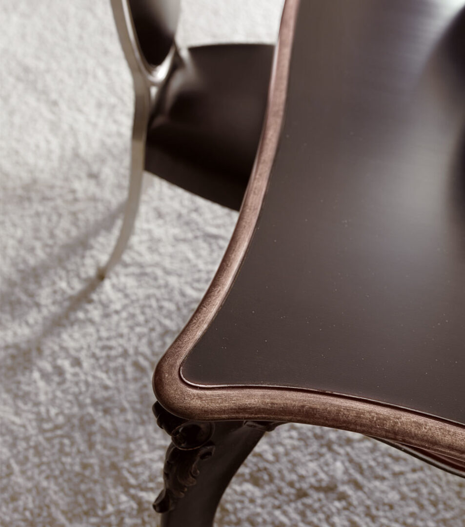 Стол CHARLOTTE сочетает в себе благородство классических форм и смелые дизайнерские решения. Его силуэт — это идеальный баланс между строгостью линий и мягкостью изгибов, создающий ощущение легкости даже при внушительных размерах. Коллекция CORTEZARI славится вниманием к деталям: резные элементы, филигранная фурнитура и продуманные пропорции делают этот стол универсальным — он одинаково органично впишется в просторную столовую загородного дома или в лаунж-зону элитного ресторана.