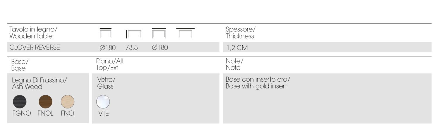 Итальянская мебель славится использованием только лучших материалов, и Clover Reverse — не исключение. Стол изготовлен из высококачественной древесины, обработанной вручную, что гарантирует его прочность и безупречный внешний вид на десятилетия. Дополнительные элементы могут включать: