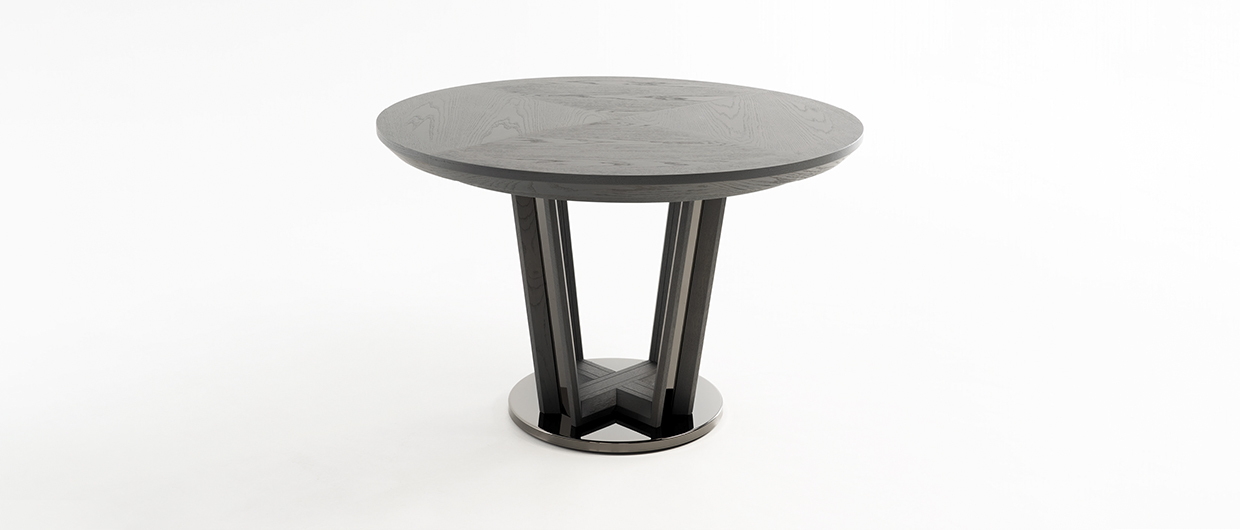 Обеденный стол DIAMOND от итальянской фабрики TOSCONOVA — воплощение элегантности и мастерства. Круглая столешница с выразительной текстурой натурального дерева придает интерьеру утонченность и стиль. Изысканный дизайн подчеркивает внимание к деталям, характерное для итальянской мебели премиум-класса.