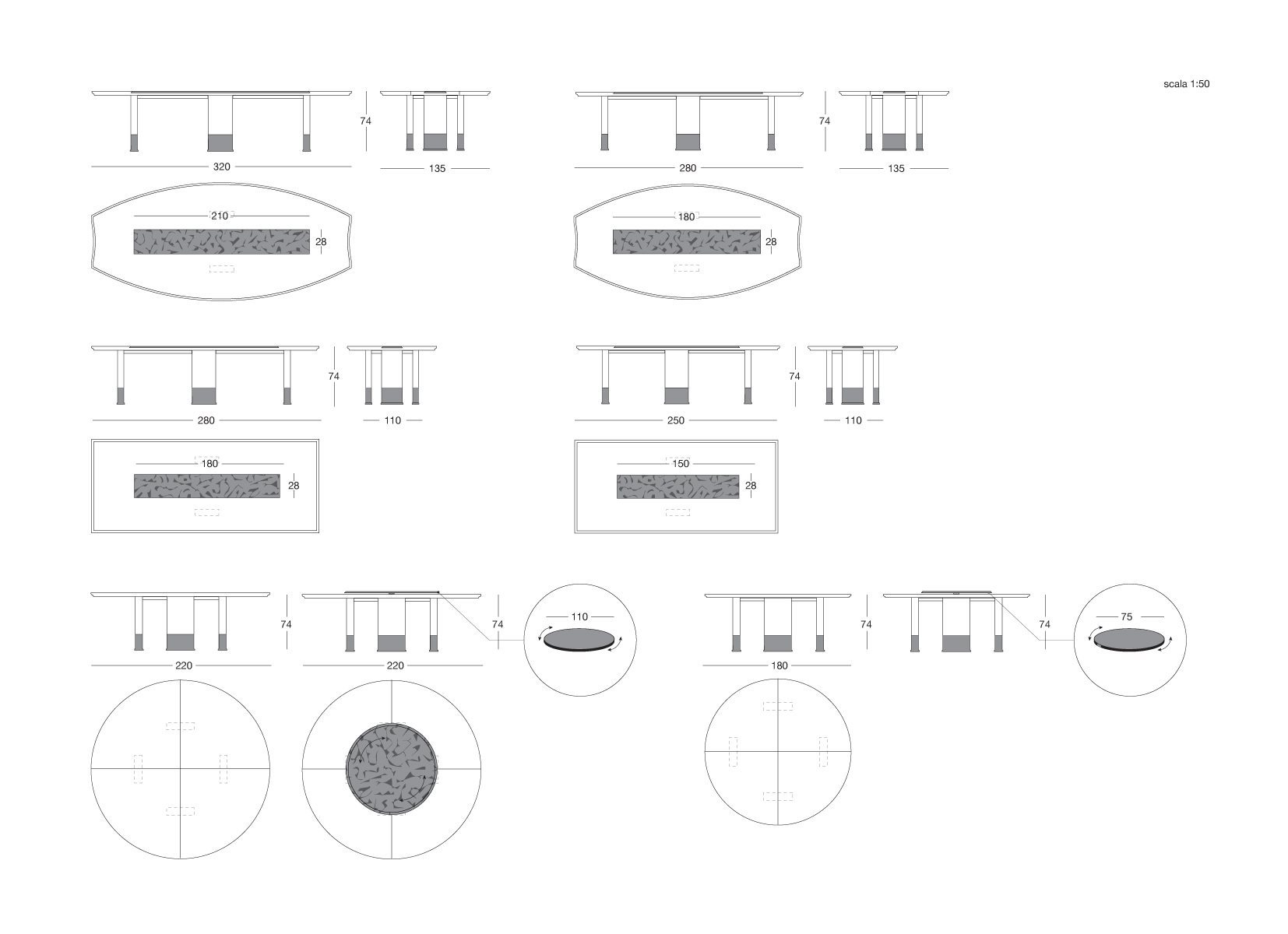 Столешница может быть выполнена из мрамора, стекла или кожи, а круглый вариант предлагает накладную поворотную поверхность. Стол EDWARD станет центром притяжения в любом интерьере, подчеркивая утонченный вкус владельца.