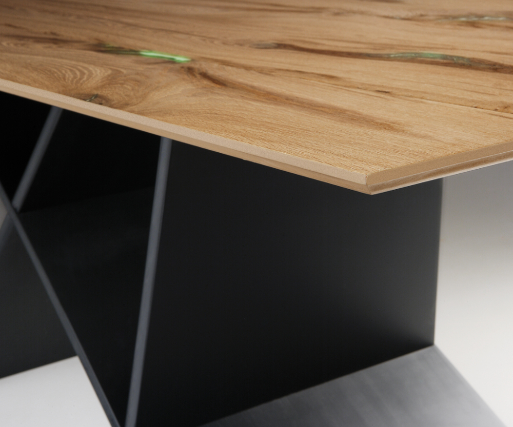 Стол Emme от итальянской фабрики NOVAMOBILI – это современная интерпретация классики с выразительным дизайном. Прямоугольная шпонированная столешница доступна в различных вариантах отделки, включая эффектную узловатую дубовую поверхность со смоляными трещинами, подчеркивающую естественную красоту дерева. Модель может быть выполнена в расширяемой версии для большего удобства.