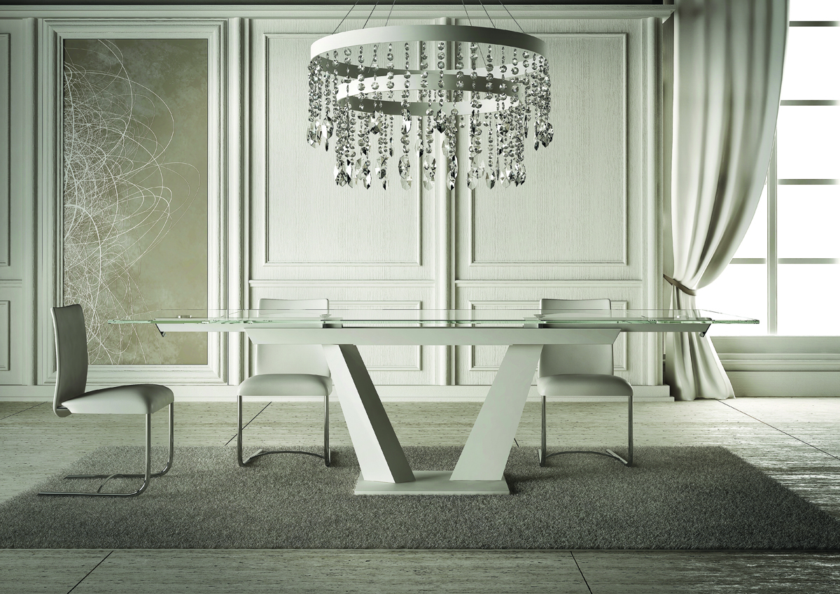 Стол FEELING — это образец современного итальянского дизайна, который гармонично сочетается с различными стилями интерьера. Его удлиняемая конструкция позволяет легко адаптировать пространство под ваши нужды, создавая уютную атмосферу для обедов с семьей или приемов гостей. Стол оснащен хрустальным верхом и элегантным основанием, выполненным из хромированного или окрашенного металла, что придает ему нотку роскоши и современности.