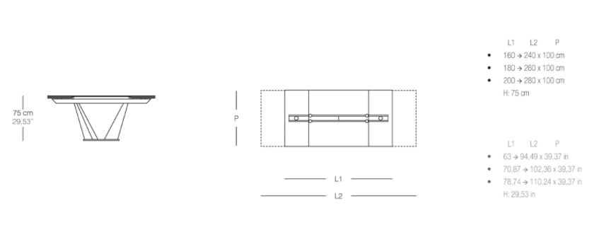 Каждый элемент стола FEELING изготовлен из высококачественных материалов, что гарантирует его долговечность и устойчивость к повседневному использованию. Хрустальный верх не только красиво смотрится, но и легко очищается, что позволяет вам наслаждаться красотой стола без лишних забот. Запатентованный механизм, позволяющий извлекать боковые расширения, делает процесс трансформации стола простым и удобным.