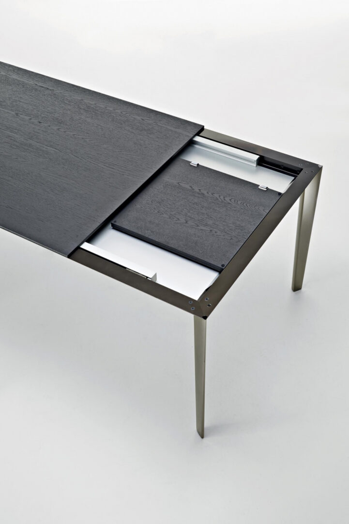 Стол FILIGREE от итальянской фабрики MOLTENI & C сочетает элегантность и функциональность. Уникальная телескопическая система позволяет незаметно удваивать размер столешницы, сохраняя минималистичный дизайн. Алюминиевые рамы с глянцевым или матовым покрытием дополнены столешницами из различных материалов, что обеспечивает гармоничное сочетание с любым интерьером. Благодаря компактной конструкции (внутренняя толщина всего 38 мм) стол идеально подходит для современных пространств.