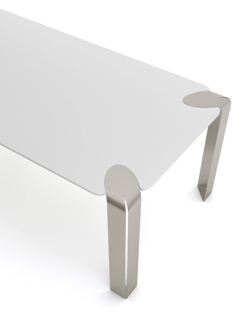 Производитель предлагает на выбор столешницы из закаленного стекла или керамики, установленные на прочную конструкцию из гнутого металла. Итальянское качество исполнения гарантирует долговечность и безупречный внешний вид.