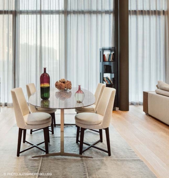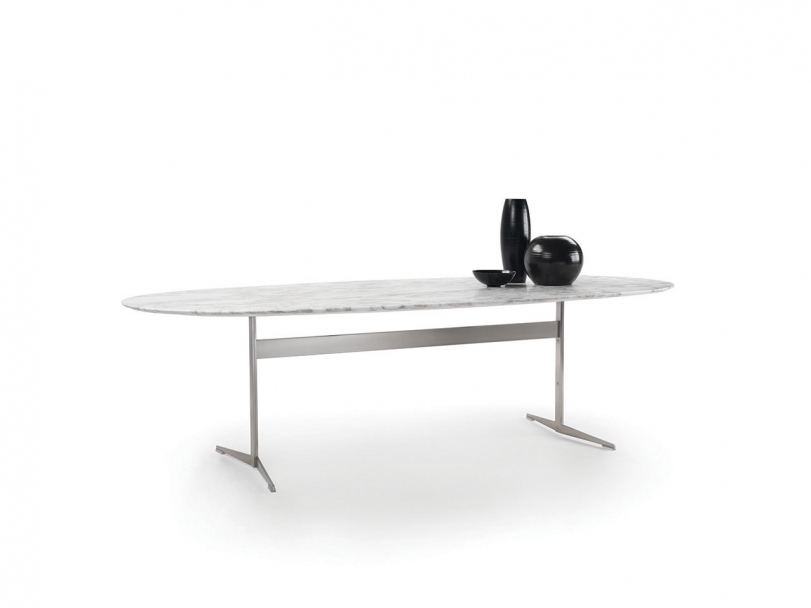 Стол FLY от итальянской фабрики FLEXFORM – воплощение элегантности и функциональности. Доступен в различных формах: круглой, овальной, прямоугольной и расширяемой версии. Основание выполнено из металла с выбором отделки: сатинированное, хромированное, полированное или черный хром. Столешница предлагается в натуральном дереве (грецкий орех Canaletto, ясень) с разнообразной палитрой окраски или в благородном мраморе (Calacatta Oro, Carrara, Nero Marquina).