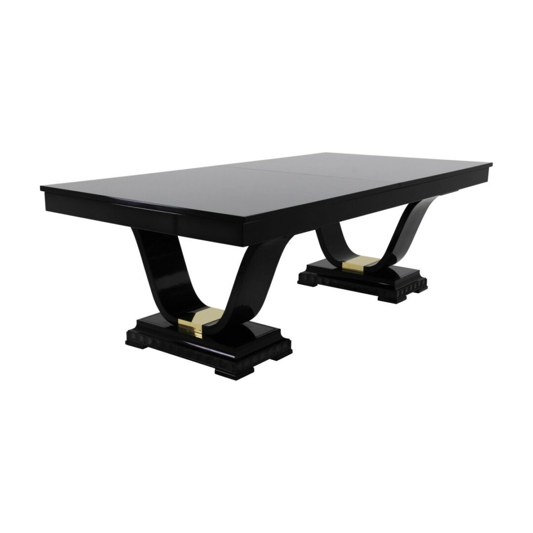 Стол GAUSS — это великолепный большой раздвижной обеденный стол итальянского производства от фабрики SEVENSEDIE. Его черная глянцевая отделка в сочетании с облицовкой из вишневого дерева придает элегантный и современный вид. Стол может быть выполнен на заказ с различными вариантами лакового покрытия и вставками из металла с позолоченным покрытием.