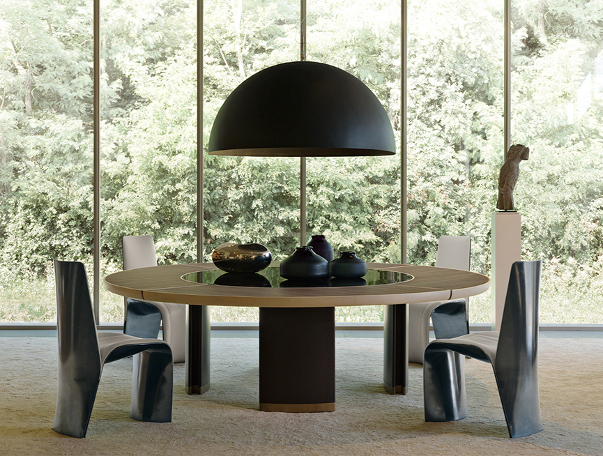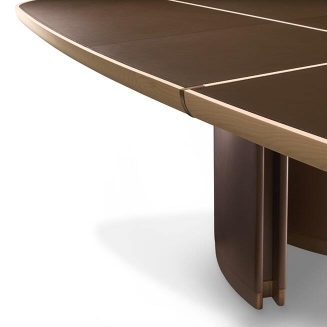 Стол GORDON представлен в нескольких формах: прямоугольной и круглой, что позволяет легко интегрировать его в различные интерьеры. Его размеры варьируются от 300 x 132 см до Ø 250 см, что делает его универсальным решением для любого пространства – от уютного обеденного уголка до роскошной столовой. Красивая отделка из клена и кожи придаёт столу благородный вид, а возможность добавления вставок из розового дерева Индии, мрамора или сапелли делает его поистине уникальным.