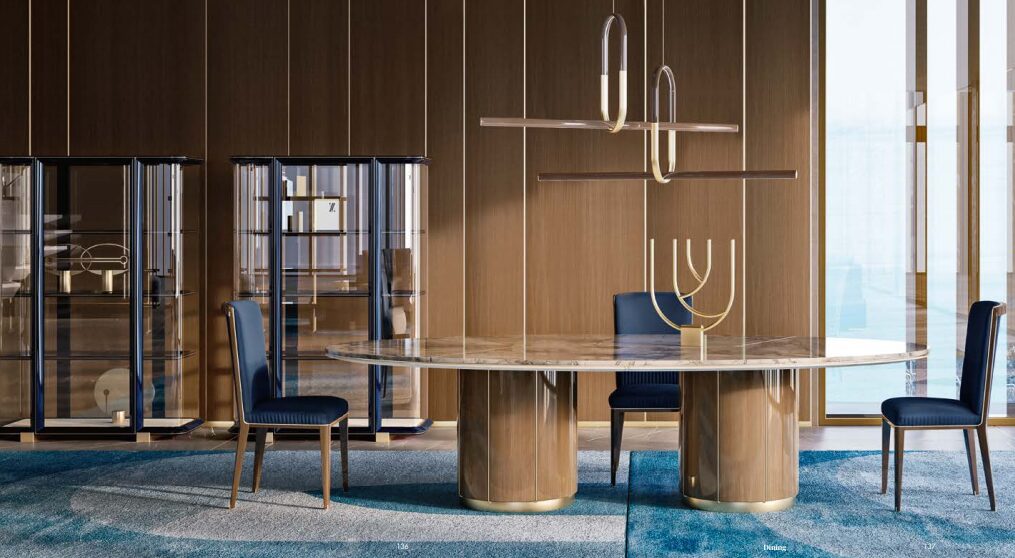 Стол GREGORY сочетает в себе классическую элегантность и современные тенденции. Его лаконичные линии и продуманные пропорции создают ощущение легкости, несмотря на монументальность конструкции. Каждая деталь тщательно проработана дизайнерами LuigiVoipl, что делает этот стол универсальным для любых пространств — от просторных столовых до уютных гостиных.