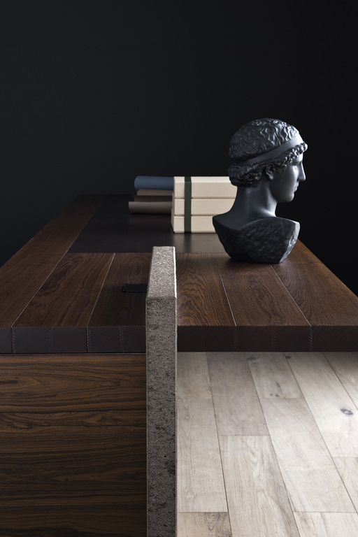 Стол H_O отличается великолепной архитектурой с толстыми столешницами, которые доступны в двух размерах, предлагая идеальные решения для любых интерьеров. Поверхности, выполненные из тополиной фанеры, обтянуты высококачественным дубом Ash-Tined или Louro Preto, что придает мебели изысканный вид и долговечность. Особая изюминка — детализированные стыки на поверхности стола, раскрывающие мастерство горизонтальных ламелей. Вы можете выбрать между моделями H_O President Desk и H_O Executive Desk, каждая из которых станет символом вашего успеха.