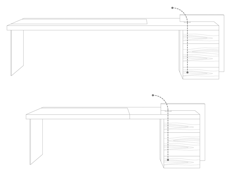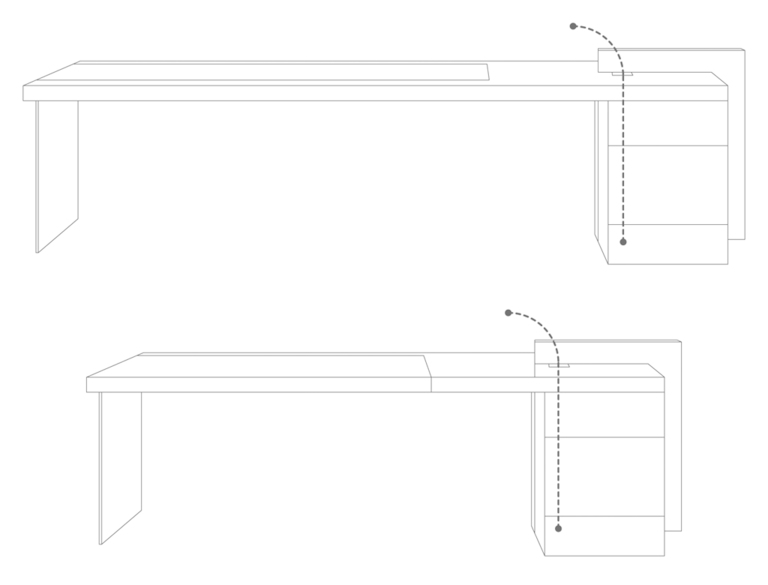 Каждая деталь стола говорит о высоком мастерстве: от стыков на поверхности до обивки кожей Cuoio Saddle. Выдвижной ящик можно разместить с любой стороны, а отверстие для кабелей обеспечивает идеальный порядок. Стол станет не просто функциональным, но и стильным акцентом в вашем офисе или кабинете.