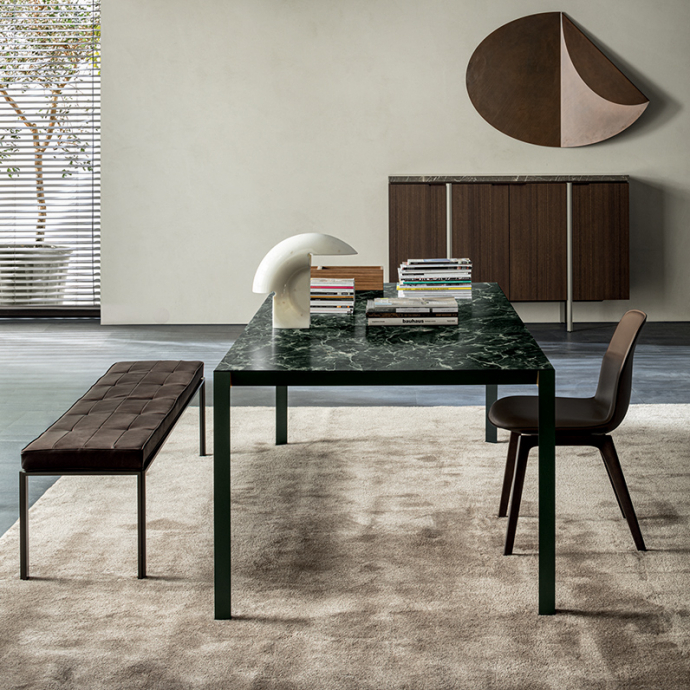 Идеально подходит для обеденных зон, этот стол подчеркивает стиль интерьера, сохраняя функциональность. Произведён в Италии с безупречным вниманием к деталям и качеству материалов.