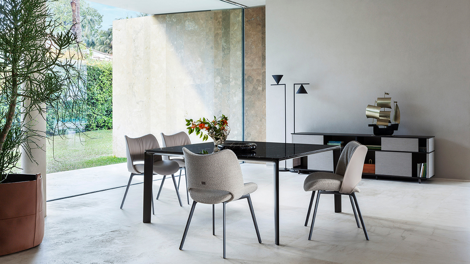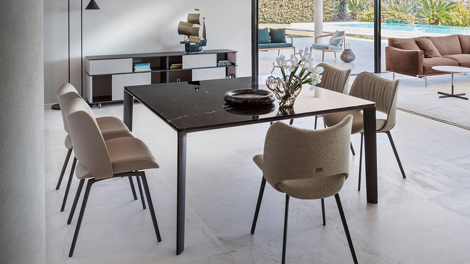 Стол Homey отличается компактными и графичными линиями, создающими атмосферу легкости. Литые алюминиевые ножки придают изделию уникальность, а эффект светотени добавляет изысканности.