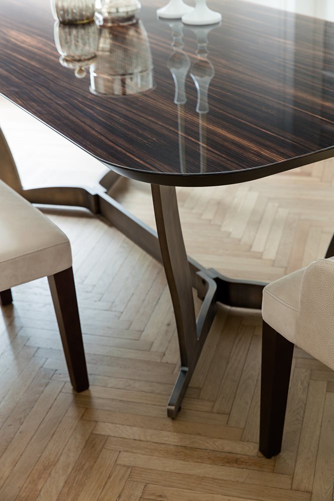 Стол HUMPHREY от итальянской фабрики ALBERTA SALOTTI – это идеальное сочетание элегантности и современного стиля. Подобранная металлическая основа в сочетании с богатой жилкой черного дерева придает изделию уникальность, что делает его подходящим для любых интерьеров, как классических, так и современных.