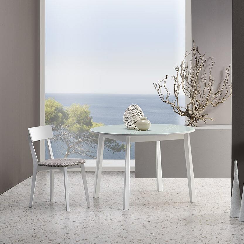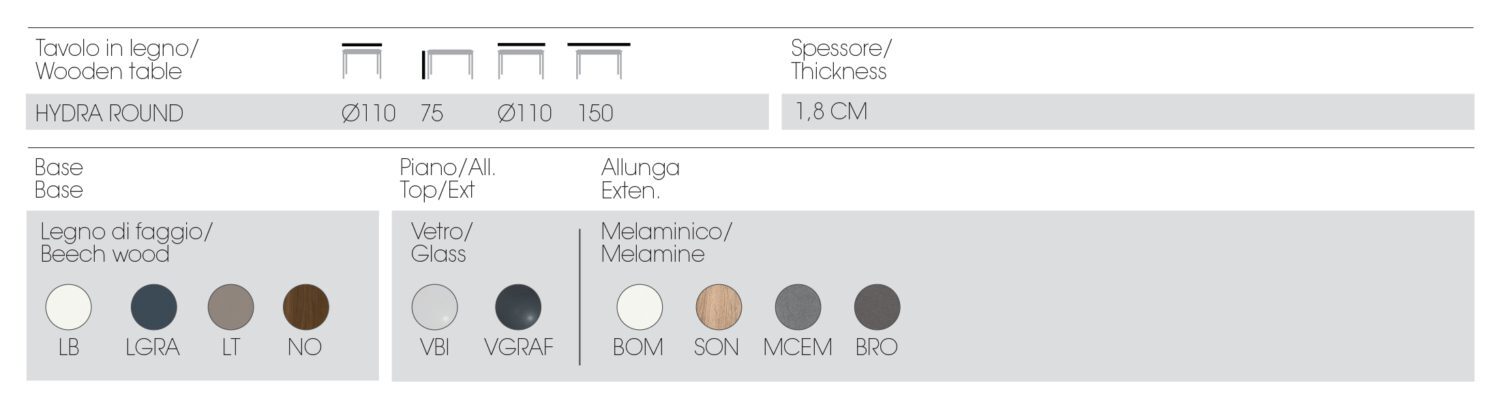Стол Hydra Round от итальянской фабрики NOVAMOBILI сочетает в себе простоту и эклектику. Модель с раздвижным механизмом предлагает два варианта столешницы: из стекла или меламина. Деревянные наклонные ножки придают конструкции легкость, а комбинация стеклянной крышки с деревянным удлинительным листом создает эффектный контраст.