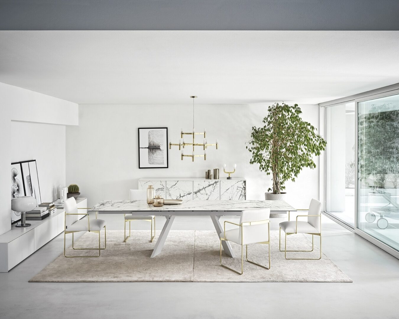 Стол ICARO CS4114-R 160 — это гармония современного минимализма и роскошной детализации. Его лаконичные формы, разработанные ведущими итальянскими дизайнерами, создают ощущение легкости и одновременно монументальности. Регулируемая высота (77 или 64 см) и раздвижной механизм (160/200/240 см) делают его универсальным решением для любых сценариев: от семейных обедов до торжественных приемов.