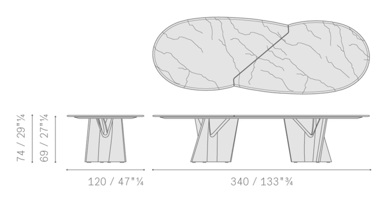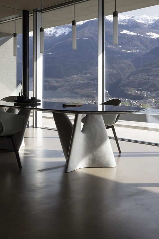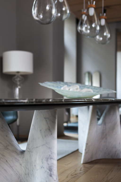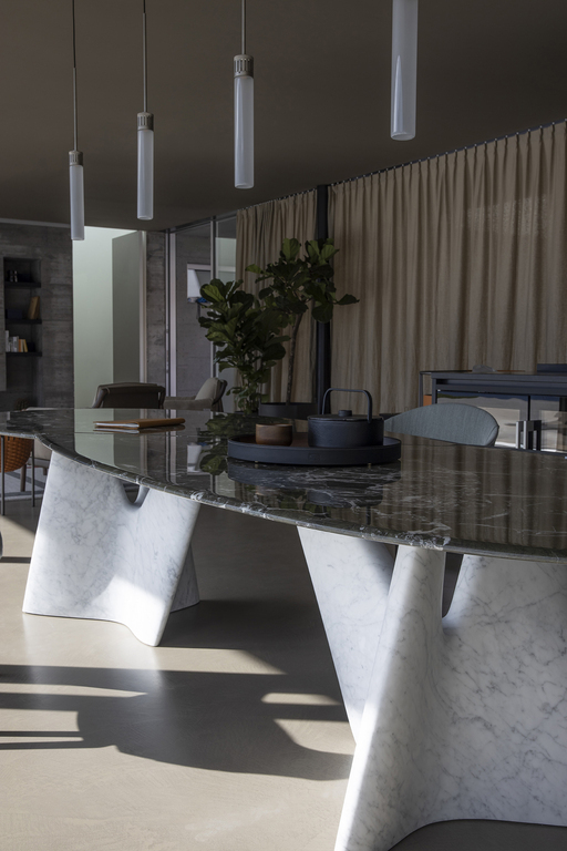 Сложная двойная овальная форма стола Infinito напоминает поэтические образы инь и ян, олицетворяя гармонию и баланс. Эта форма, подобно перевернутой восьмерке, символизирует бесконечность и процветание. Легкость и динамика стола выражаются в его изящных линиях, которые делают его акцентом любой комнаты. Каждая ножка, вырезанная из цельного блока белого каррарского мрамора, обработана вручную и придает изделию скульптурную ценность и элегантность.