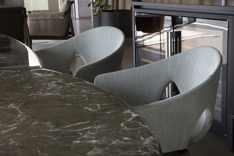Стол Infinito станет центром притяжения в вашем доме, создавая атмосферу уюта и респектабельности. Представьте, как он украшает ваш обеденный зал, становясь местом встреч с близкими и друзьями, где каждое мгновение наполняется гармонией и стилем. Вы можете выбрать персонализацию обивки или цвета, чтобы он идеально вписался в ваш интерьер.