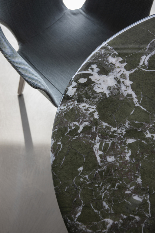 Основу стола составляет мрамор — материал, известный своей прочностью и долговечностью. В дополнение к этому, столешница украшена тонким лезвием из нержавеющей стали, которое объединяет две овальные поверхности, создавая эффект легкости и изысканности. Уникальность каждого экземпляра подтверждается латунной табличкой с рутениевой отделкой, на которой размещены логотип Poltrona Frau, подпись дизайнера и серийный номер.