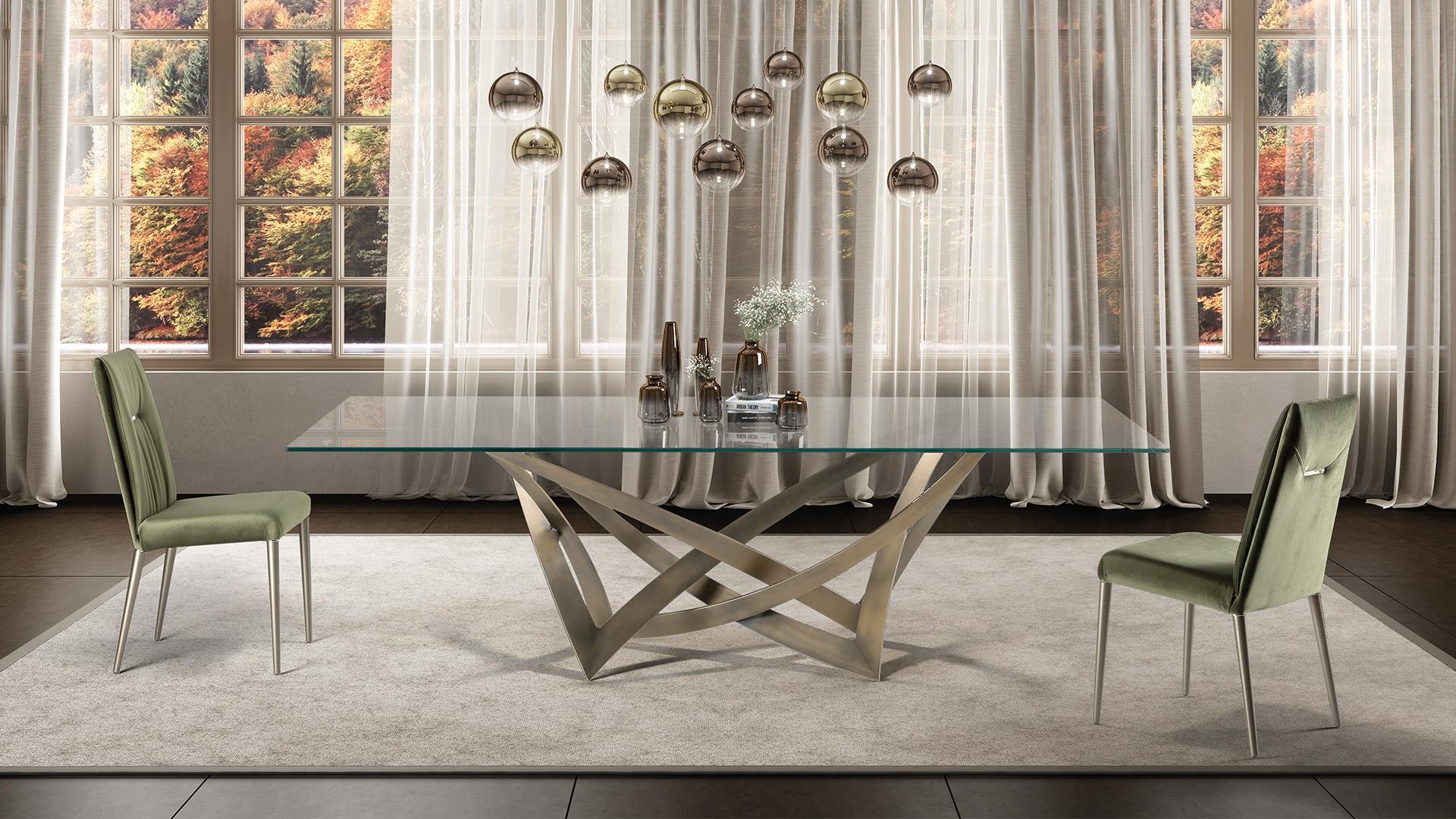 Обеденный стол INFINITO от итальянской фабрики REFLEXANGELO — элегантное решение для современного интерьера. Модель сочетает прочную атласную основу из нержавеющей стали с толстым закалённым стеклом (15 мм) в форме барреля или прямоугольника. Итальянское качество исполнения гарантирует долговечность и стильный внешний вид.